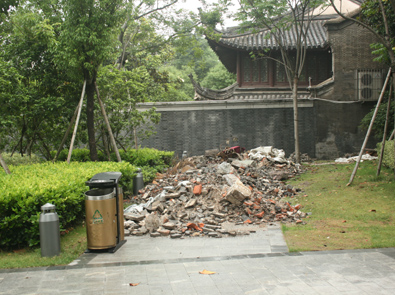 | 讀者放映,江東中興路華僑城小區(qū)門口的綠化帶上壓了幾個交通指示牌,目前該指示牌已經收拾好按規(guī)定進行放置。