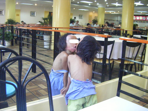 小女孩重來(lái)沒(méi)有看到這么大的鏡子,一直望著鏡子中的我發(fā)呆