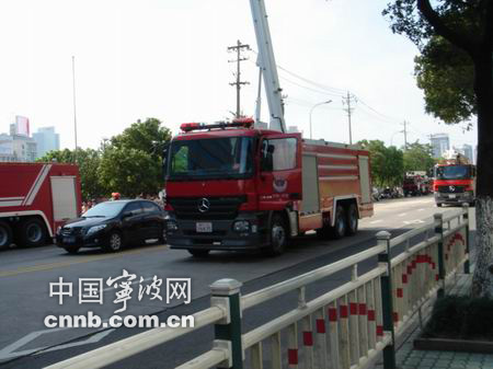 據(jù)現(xiàn)場目擊者說,火災(zāi)發(fā)生時(shí),寧波市消防部門快速出動了附近的消防車。