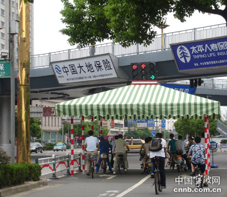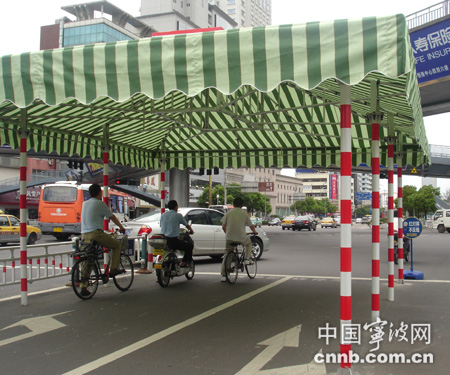 據(jù)記者了解,在上海、杭州、紹興等地都有設(shè)過類似的“遮陽棚”。這一措施在寧波也并非首例了,早在2006年,琴橋西堍路口的東南側(cè)非機(jī)動車道上也有安裝過。今年,交警部門聯(lián)合城管部門在久久天橋設(shè)立試點(diǎn),這一遮陽棚如有效果,將在市區(qū)其他路口推廣。