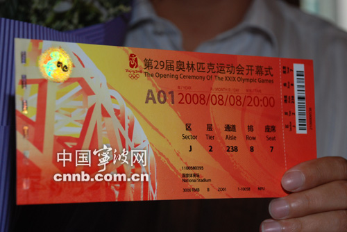 寧波一市民獲奧運(yùn)開(kāi)幕式門票(組圖)