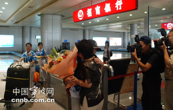 飛機(jī)是12點(diǎn)55分到達(dá)寧波櫟社機(jī)場的,在等待了一會后,志愿者們推著行李車出現(xiàn)在大家面前。一見面,志愿者邵淑瑜的父母就給女兒一個(gè)深深的擁抱,女兒能夠參與北京奧運(yùn)會的志愿服務(wù)他們也格外的高興。