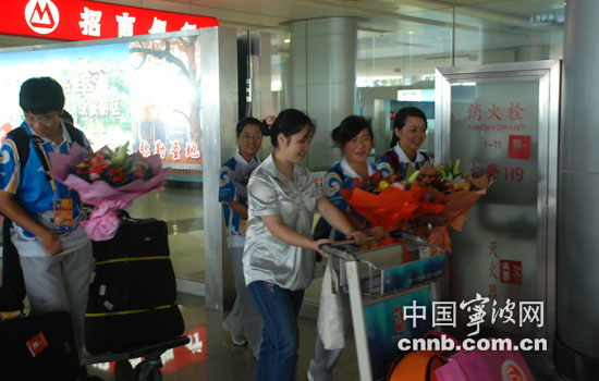 中國寧波網(wǎng)訊(記者葉商倫)今天中午1點(diǎn)左右,寧波市奧運(yùn)志愿者結(jié)束了在北京24天的志愿服務(wù),出色的完成了各項(xiàng)任務(wù),團(tuán)市委、市志愿者協(xié)會領(lǐng)導(dǎo),志愿者的父母到機(jī)場接機(jī)。