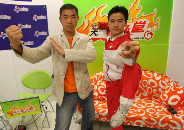 今天上午10點,中國寧波網(wǎng)聯(lián)合東南商報打造的天一紅人堂邀請本屆比賽中“二指禪”單項冠軍王巍保和“單掌斷磚”冠軍賀維奇做客網(wǎng)絡(luò)直播室,在線和讀者、網(wǎng)友互動,聊聊他們的絕活是怎樣練成的。有興趣的朋友可加天一紅人堂直播互動QQ群12191297,或進入天一論壇http://bbs.cnnb.com.cn在線提問,觀看在線視頻直播請點擊http://red.cnnb.com.cn。