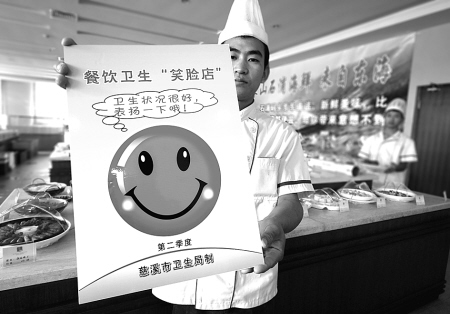 本報(bào)訊(記者楊緒忠 通訊員沈麗群)餐館衛(wèi)生好不好,前來就餐的顧客可以通過三張不同的臉譜了解情況:紅色“笑臉”代表衛(wèi)生情況良好;藍(lán)色“平臉”代表衛(wèi)生狀況一般;黃色“苦臉”代表衛(wèi)生狀況差。自今年慈溪市衛(wèi)生局推出餐飲衛(wèi)生示范街創(chuàng)建活動(dòng)和衛(wèi)生監(jiān)督信息公示“笑臉行動(dòng)”以來,當(dāng)?shù)厥忻裢獬鼍筒涂煽础靶δ槨狈判南M(fèi)。