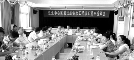 江北中心區(qū)域居民用上水庫水的喜訊,在當?shù)鼐用裰胁粩鄠鞑ァ?月2日上午,為聽取居民們對城市供水的意見和建議,市城管局、市自來水總公司在白沙街道辦事處舉行江北中心區(qū)域優(yōu)質(zhì)供水工程竣工通水座談會。
