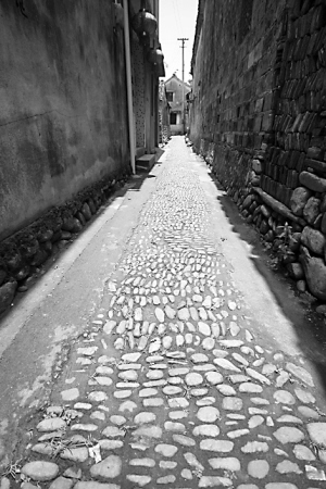 幾百年的老路大都是由鵝卵石鋪成的,歷經(jīng)歲月的磨練,變得越發(fā)有意境。這兩條路最寬處不過(guò)3米,而最窄的地方兩人通行必須貼面而行,在古鎮(zhèn)里隨意延伸轉(zhuǎn)折,好像兩條經(jīng)絡(luò)串聯(lián)起那些百年的老屋。在路的兩邊都有排水的溝渠,和兩條小路一起流淌在歲月之中。孩子們?cè)谛÷飞想S意嬉戲,老人悠閑地靠著老屋的門口,共享寧?kù)o和安詳。