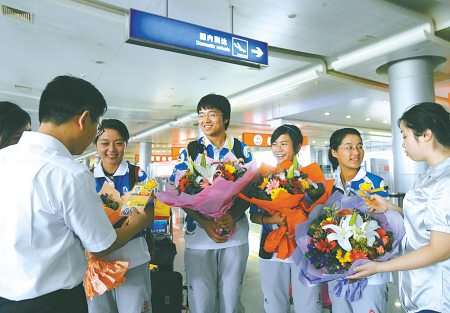 本報(bào)訊(記者龔哲明)昨日,我市6位奧運(yùn)志愿者結(jié)束在北京24天的志愿服務(wù),出色完成各項(xiàng)任務(wù)返回寧波。團(tuán)市委、市志愿者協(xié)會(huì)負(fù)責(zé)人及志愿者的父母到機(jī)場(chǎng)迎接。