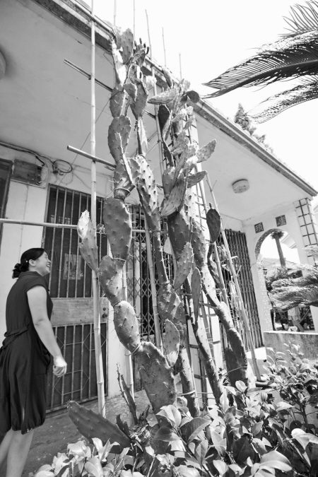 仙人掌的主人胡老伯已70多歲了,為了讓仙人掌更好地生長,胡老伯還特地搭了竹架子,讓仙人掌順著竹架往上爬。胡老伯說,這四棵仙人掌已種了10多年,看著仙人掌一天天地長高,他很開心。這四棵仙人掌每年都開花,開花時更美。近年,不斷有遠近鄉(xiāng)鄰慕名前來觀看,還有人出高價想買下它。