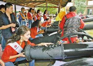 佳麗參觀影視城炮臺(tái)。