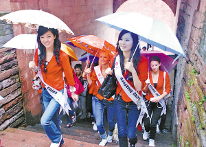 本報(bào)訊(記者 李臻)昨天,一股強(qiáng)勁的“美麗風(fēng)”刮到了象山:2008環(huán)球皇后世界大會(huì)的佳麗們齊聚石浦,舉行一系列豐富多彩的活動(dòng)。雖然受臺(tái)風(fēng)“森拉克”的影響,天空烏云密布,時(shí)而還飄著細(xì)雨,但佳麗們的精彩表現(xiàn)卻一次次點(diǎn)燃了現(xiàn)場觀眾的熱情。