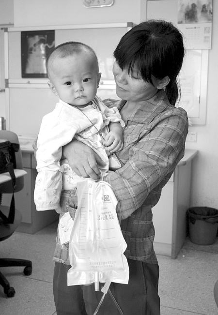 9月16日,有7個月三鹿奶粉喂養(yǎng)史的危重患兒劉星佑在醫(yī)院治療。僅9個月大的劉星佑是廣西醫(yī)科大學第一附屬醫(yī)院收治的首例有三鹿奶粉喂養(yǎng)史患結石病的嬰兒。他5日入院時雙腎、膀胱患有多發(fā)性結石,腎功能衰竭,院方曾發(fā)下病危通知。經醫(yī)院10余天奮力救治,嬰兒生命體征基本恢復,下一步將接受手術排石治療。(新華社發(fā))