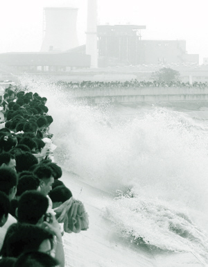 。玻埃埃钢袊鴩H錢江(海寧)觀潮節(jié)15日晚在浙江省海寧市鹽官觀潮景區(qū)開幕,記者從觀潮節(jié)上了解到,2008年錢塘潮涌為近5年來最高,是因?yàn)槊酚昙竟?jié)雨水充足等原因,給形成大潮提供了有利的條件。