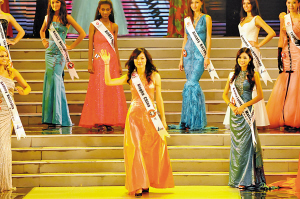比賽在各國(guó)佳麗的民族服裝展示中拉開(kāi)了帷幕,來(lái)自世界各地的70位佳麗,穿著絢麗的民族服飾進(jìn)行了精彩的亮相。中國(guó)的旗袍、日本的和服、蘇格蘭的格子裙……觀眾看著臺(tái)上各式各樣的民族服飾連連贊嘆:“好像參加了一場(chǎng)世界服飾博覽會(huì)!苯酉聛(lái)的性感比基尼、魅力服飾展和高貴晚裝展示充分體現(xiàn)了中西文化的碰撞,佳麗們身穿各色泳裝在舞臺(tái)上跳起了熱舞,東方佳麗溫文爾雅,西方選手熱情奔放。