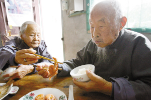 孩子們認(rèn)為,兩老能一起走過80年,那是因?yàn)樗麄冃牡丶儤、率直、寬容、善良、謙讓,沒有太多的物質(zhì)、權(quán)勢欲望。說起他們的“養(yǎng)老經(jīng)”,十分平實(shí):葷素不忌,每餐都吃米飯,煙酒不沾,午后小睡一覺,保持潔凈。平時,兩老還去老年協(xié)會看電視、打麻將。