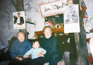 20多年前,兩老和孫子在家中合影。
