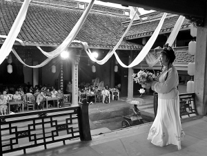 和美茶道館古戲臺上每天都舉行票友演唱會,甬劇、越劇、京劇等劇種的票友輪番表演折子戲!洞蚪鹬Α贰ⅰ端魏肟够椤、《秦香蓮》……一出出老寧波熟悉的古典戲曲此人入勝。臺上表演的是各社區(qū)的資深票友,裝扮起來和專業(yè)演員差不離,而臺下觀眾大多是周邊社區(qū)的居民,最遠(yuǎn)的還專程從北侖等地趕來。