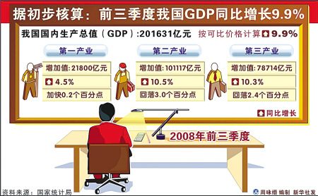 據(jù)新華社北京10月20日電 國家統(tǒng)計局新聞發(fā)言人李曉超20日說,據(jù)初步核算,前三季度國內(nèi)生產(chǎn)總值201631億元,按可比價格計算,同比增長9.9%,比上年同期回落2.3個百分點。前三季度,我國居民消費價格總水平(CPI)同比上漲7.0%,漲幅比上半年回落0.9個百分點,其中,城市上漲6.7%,農(nóng)村上漲7.7%。