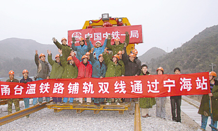 昨天,承擔(dān)甬臺(tái)溫鐵路寧波段鋪軌任務(wù)的中鐵一局建設(shè)者在寧海至三門區(qū)間歡慶雙線鋪軌順利通過寧海站。甬臺(tái)溫鐵路寧波段是去年9月20日在鄞州邱隘開始鋪軌的,寧波段全長93.3公里。鋪軌結(jié)束后,中鐵一局施工人員將緊鑼密鼓地開始機(jī)械化養(yǎng)路、單元軌焊接、應(yīng)力放散與鎖定等作業(yè),為今年9月通車提供可靠保障。