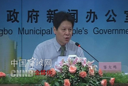 圖為寧波市文化廣電新聞出版局副局長(zhǎng)鄒大鳴發(fā)布新聞。記者陳錦源攝