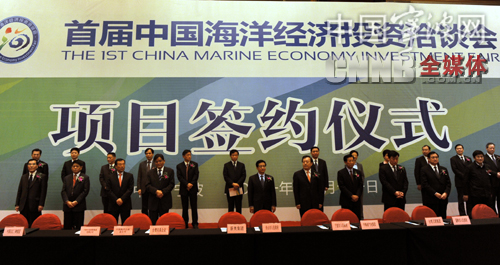 中國寧波網(wǎng)11月11日訊(記者 錢昕)今天上午,首屆中國海洋經(jīng)濟(jì)投資洽談會(huì)舉行項(xiàng)目簽約儀式。本屆海洽會(huì)簽約項(xiàng)目共106個(gè),協(xié)議投資總額超過3600億元人民幣。其中寧波市簽約項(xiàng)目24個(gè)。