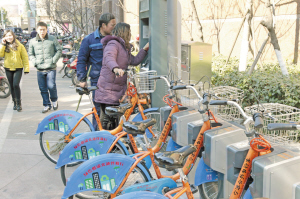 公共自行車推出后受到市民的普遍歡迎。記者王鵬攝