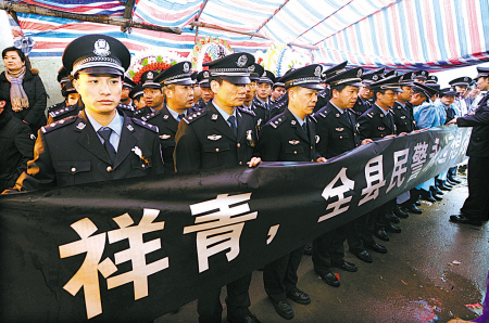 上千名群眾紅著眼,撐著傘,一個(gè)緊挨一個(gè)排成長龍,從村口一路蜿蜒到徐祥青的家門口。