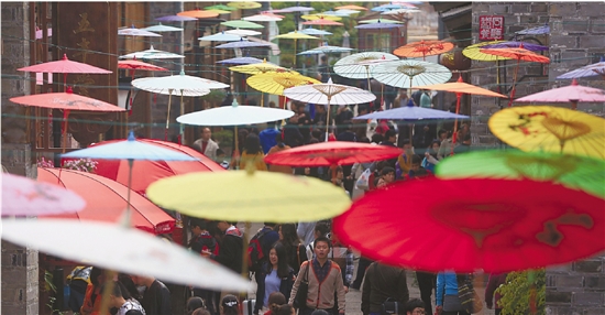 昨天是寧波海曙區(qū)南塘老街2014年清明風(fēng)俗會的最后一天,南塘老街上人山人海,市民和游客們享受著各種清明傳統(tǒng)美食。傘,是江南清明時(shí)節(jié)的必需品,白蛇與許仙定情的油紙傘,也曾點(diǎn)綴了千年南塘河岸的疏影。此次南塘老街將綢傘主題造景布置于主街內(nèi),上百把五顏六色的綢傘在悠悠的魚骨長巷中勾勒出一幅煙雨江南的春景,使游人漫步在街上感受著最美的南塘,最美的寧波。本報(bào)通訊員郭戟鎧攝