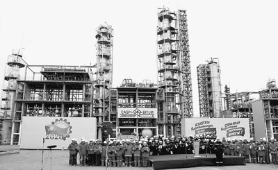 中國去年提出共建絲綢之路經(jīng)濟帶倡議,激起了絲綢之路沿途國家更大的合作熱情。圖為中國和哈薩克斯坦最大的非資源領(lǐng)域投資項目——阿克套瀝青廠開工儀式現(xiàn)場。本報記者黃文帝攝