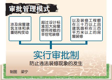 鄭世海說,除了明確禁止的行為外,還設置了審批管理模式,就是對涉及房屋建筑主體和承重結構變動或者超過設計標準加大房屋使用荷載的非住宅裝修,以及裝修工程額在三十萬以上且建筑面積在三百平方米以上的房屋裝修,實行審批制,防止違法裝修現(xiàn)象的發(fā)生。東南商報記者張昊