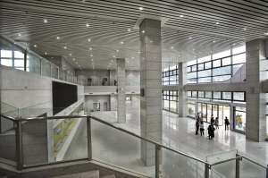 | 新汽車南站為地上五層、地下一層結(jié)構(gòu),總用地面積17200平方米。圖為車站售票大廳。記者 龔國(guó)榮 攝 |