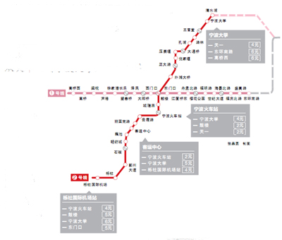 2號線一期工程是城市西南—東北方向的骨干線路,西起櫟社國際機場站,東至清水浦站,經過鄞州、海曙、江北、鎮(zhèn)海四個行政區(qū),串聯(lián)機場、客運中心、火車站、北高教園區(qū)等大型客流集散點,是軌道交通線網中貫通西南至東北的重要骨干線。
