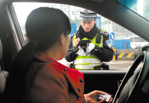 | 昨天,海曙交警在轄區(qū)主要路口開(kāi)展交通整治行動(dòng)。交警提醒,邊開(kāi)車邊玩手機(jī)的行為非常危險(xiǎn),發(fā)生事故的概率是正常駕駛的兩三倍。圖為交警在中山西路與環(huán)城西路交叉口查處開(kāi)車“低頭族”。(徐文杰 石奇峰 攝) |