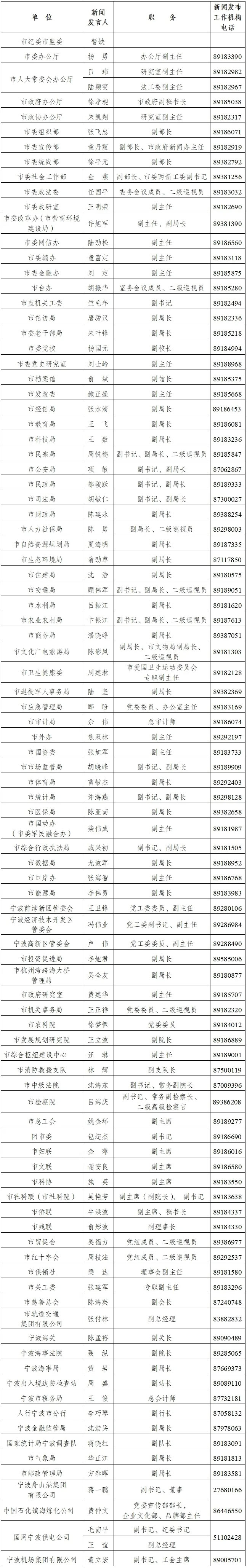 寧波市各有關(guān)部門新聞發(fā)言人名單及新聞發(fā)布工作機(jī)構(gòu)電話
