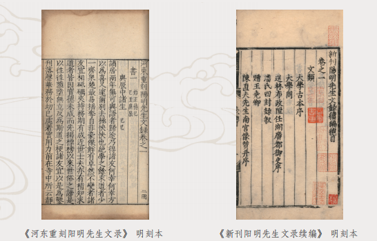 《河?xùn)|重刻陽(yáng)明先生文錄》(明嘉靖三十二年刻本)由王陽(yáng)明弟子黃綰、歐陽(yáng)德等匯編,書中主要記載王陽(yáng)明與諸弟子講學(xué)明道之文章以及王氏詩(shī)賦、序言、記說(shuō)、墓表等作品;《新刊陽(yáng)明先生文錄續(xù)編》(明嘉靖十四年刻本)作為貴陽(yáng)刊行的善本,收錄300多篇詩(shī)文,內(nèi)容涉及其思想、生活、交游等多個(gè)方面,還含《王文成公全書》未收的佚作,對(duì)研究和傳承王學(xué)經(jīng)典具有重要文獻(xiàn)價(jià)值。