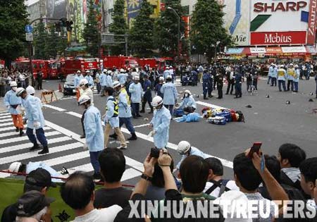 6月8日,警察和醫(yī)務(wù)人員在日本東京秋葉原電車站附近檢查。當日,這里發(fā)生一起惡性傷害事件,一名男子駕車撞傷路人后又下車用刀刺向路人及警察。 新華社/路透 (圖片來源:新華網(wǎng))