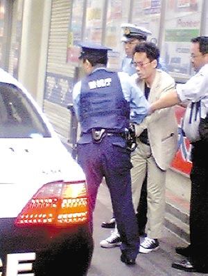 中間男子為被捕的嫌疑人加藤智大(圖片來源:廣州日報 )
