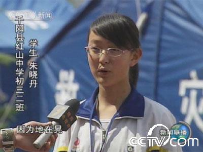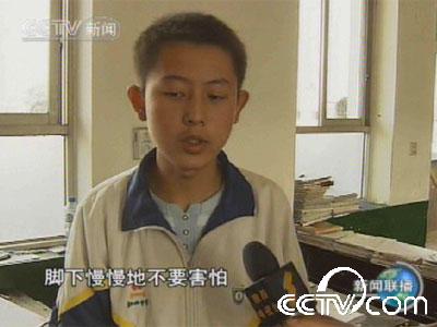 千陽(yáng)縣紅山中學(xué)初三二班學(xué)生朱曉丹:因?yàn)榈卦诨,拐子根本搭不住,也就沒(méi)法走,特別害怕,腿都發(fā)軟。