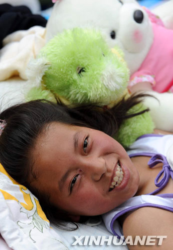 5月12日地震發(fā)生時(shí),四川省青川縣木魚中學(xué)初一13歲的女生何翠青本已走出宿舍,當(dāng)她意識(shí)到發(fā)生了地震,不是迅速逃生,而是跑進(jìn)宿舍,將十多名還在午休的同學(xué)從床鋪上搖醒逃生,自己卻失去最佳逃生時(shí)間,被壓在廢墟下。50個(gè)小時(shí)后,她憑著巨大的求生欲望和驚人毅力,在救援人員的幫助下獲救。何翠青是木魚中學(xué)最后一個(gè)被救學(xué)生,由于重物長(zhǎng)時(shí)間擠壓肌肉組織壞死而永遠(yuǎn)失去了右腿。記者問這位堅(jiān)強(qiáng)的女孩“你后悔嗎?”她搖著頭哽咽地說:“不后悔,后悔的是我沒有能救出更多的同學(xué)”。新華社記者陶明 攝 |