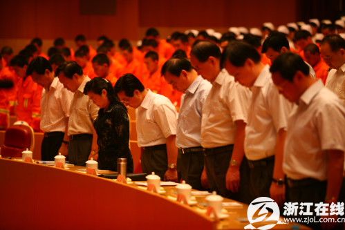 浙江省委書記趙洪祝等領導在現(xiàn)場默哀。