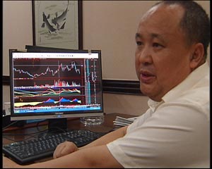 張堅(jiān)卿是上海一家投資公司的總裁,也是他告訴老謝3000點(diǎn)的時候不要購買股票,他告訴記者,由于一直不看好市場,他們只用了不到20%的倉位在操作股票,在市場下跌的途中,他們只瞄準(zhǔn)了一些題材股和權(quán)證。