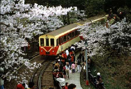 阿里山森林鐵路 阿里山在嘉義縣東北,是大武戀山、尖山、祝山、塔山等十八座山的總稱,主峰塔山海拔二千六百多公尺,東面靠近臺(tái)灣最高峰玉山。 阿里山空間距離僅十五公里,但由山下一層一層盤旋繞上山頂?shù)蔫F路,竟長(zhǎng)達(dá)七十二公里,連通各森林區(qū)的支線,總長(zhǎng)度有一千多公里。 沿途有八十二條隧道,最長(zhǎng)的達(dá)一千三百公尺;疖嚧┻^(guò)熱、亞熱、溫、寒四帶迥異的森林區(qū)。 阿里山的森林、云海和日出,譽(yù)稱三大奇觀。這里所產(chǎn)的是世界罕見(jiàn)的高級(jí)建筑木材,如臺(tái)灣杉、鐵杉、紅繪、扁柏和小姬松,稱為阿里山特產(chǎn)“五木”。到了陽(yáng)春三月,阿里山又成為一個(gè)緋艷絢麗的櫻林。這里的櫻花馳名中外,每年二月至四月列為花季,登山賞櫻花的游人絡(luò)繹不絕。山上有高山博物館,陳列各種奇木異樹(shù),高山植物園內(nèi)種有熱帶、溫帶、寒帶數(shù)百種植物,游人既可飽覽林海在微風(fēng)中泛起層層波瀾的勝景,還可增加見(jiàn)識(shí)。 在晴天的破曉時(shí)分,登阿里山的塔山觀賞云海,確是賞心樂(lè)事。游人但見(jiàn)云海茫茫,瞬息萬(wàn)變,時(shí)而像連綿起伏的冰峰從山谷中冒出,時(shí)而像波濤洶涌的大海,從天外滾滾而來(lái)。難怪阿里山的云海是臺(tái)灣八景之一。觀日出的地點(diǎn)則以祝山為妙。祝山海拔僅次于塔山,為二千四百八十公尺。 黑夜退去,天空呈魚(yú)肚白,祝山后先現(xiàn)出一絲紅霞,慢慢變成弧形、半圓、大半圓,越來(lái)越紅,越來(lái)越亮。一輪紅日先從云海邊上升,再?gòu)纳巾斆俺,光芒四射,煞是一番景象? 阿里山列為臺(tái)灣風(fēng)景區(qū)之一,美景紛陳早為人所稱道,因此有“不到阿里山,不知阿里山之美,不知阿里山之富,更不知阿里山之偉大”的說(shuō)法。由于山區(qū)氣候溫和,盛夏時(shí)依然清爽宜人,加上林木蔥翠,是全臺(tái)灣最理想的避暑勝地。 |