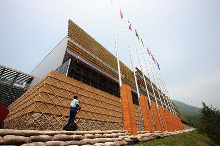 北海道(日本),2008年7月6日7月6日,一名警察乘助力車在日本北海道洞爺湖八國峰會新聞中心警戒。為期三天的八國峰會將于7月7日在洞爺湖開幕,日本政府從全國調(diào)集了約21000名警察進駐北海道維護治安,在進出會場的交通要道和會議各項設(shè)施周邊執(zhí)行警戒。新華社記者任正來 攝