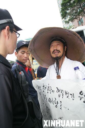 7月15日,在韓國首爾的日本駐韓國大使館前,一名抗議者流淚控訴日本竊取韓國的歷史和領土。當日,韓國民眾舉行示威,抗議日本中學教科書指導手冊將韓日有爭議的獨島(日本稱“竹島”)表述為日本領土。獨島位于朝鮮半島東部海域,面積0.18平方公里。韓國和日本都聲稱對該島擁有主權。目前該島由韓國控制。 新華社發(fā)(解澄宇攝)