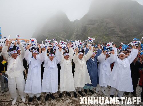 7月14日,大批韓國人在獨島(日本稱“竹島”)手舉國旗抗議。韓國外交通商部發(fā)言人文太暎當日發(fā)表聲明,強烈抗議日本在當天公布的中學教科書指導手冊中將獨島(日本稱“竹島”)表述為日本領土,并要求日本立即對有關內容進行修正。韓國外交通商部將采取召回韓國駐日本大使和召見日本駐韓國大使這兩項外交措施,就此問題向日本政府表示強烈抗議。 新華社/法新