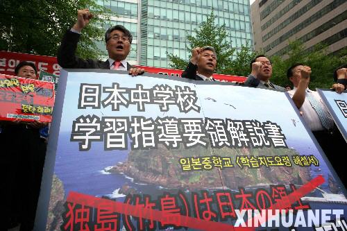 新華網(wǎng)首爾7月17日電 (記者李拯宇干玉蘭)韓國駐日大使權(quán)哲賢17日在首爾表示,日方在獨島(日本稱“竹島”)問題上的行動將影響到韓日在國際事務(wù)中的合作。連日來,韓國各地爆發(fā)了各種示威活動,抗議日本在中學教科書指導手冊中將該島列為日本領(lǐng)土。韓國政府在對日方這一做法表示遺憾的同時,決定采取強硬對策,臨時召回駐日大使。韓國總統(tǒng)李明博上臺后逐步改善的韓日關(guān)系再度“擱淺”。 |