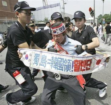 韓國民眾抗議 據(jù)《讀賣新聞》網(wǎng)站報道,日本政府14日發(fā)表聲明稱,決定從2012年起,在初中社會科新學(xué)習(xí)指導(dǎo)要領(lǐng)(教學(xué)大綱)解說書中記載竹島(韓國稱“獨島”)的主權(quán)屬于日本。 日本政府的這一決定已通過外交方式向韓國方面?zhèn)鬟_?梢灶A(yù)見,正在等待日本方面態(tài)度的韓國政府勢必將對此表示抗議。 據(jù)報道,14日上午,日本官員在首相府邸就竹島歸屬問題進行了磋商,最后根據(jù)福田首相的判斷作出決定,將從2012年起,正式在日本中學(xué)生教科書中記載竹島的主權(quán)歸屬日本。 不久前在日本召開的G8峰會上,韓國總統(tǒng)李明博已經(jīng)向日本首相福田康夫提出獨島(日本稱為“竹島”)歸屬的問題。(記者 嚴夢晨) |