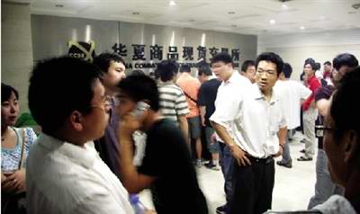前天,被卷走資金的商戶(hù)來(lái)討要資金。本報(bào)實(shí)習(xí)生 李寅 攝 致使眾多客戶(hù)賬戶(hù)內(nèi)金額基本賠光 《華夏現(xiàn)貨交易所被指巨額詐騙》追蹤 本報(bào)訊 (記者 段九如 肖岳) 昨天,本報(bào)報(bào)道《華夏現(xiàn)貨交易所被指巨額詐騙》一事后,當(dāng)天,又有近百名代理商及客戶(hù)來(lái)到交易所所在的西城區(qū)北環(huán)中心大廳登記損失。在登記過(guò)程中,多位代理商告訴記者,前天華夏現(xiàn)貨交易所負(fù)責(zé)人在華夏現(xiàn)貨交易所做筆錄時(shí),華夏現(xiàn)貨交易平臺(tái)仍在運(yùn)行,并有4單貨物漲跌幅度異常,致使眾多客戶(hù)爆倉(cāng)。而所謂爆倉(cāng),就是客戶(hù)賬戶(hù)內(nèi)的金額基本賠光。 重慶某代理商工作人員陳女士說(shuō),前天上午,華夏現(xiàn)貨交易所負(fù)責(zé)人在華夏現(xiàn)貨交易所做筆錄時(shí),她上網(wǎng)無(wú)意間發(fā)現(xiàn)華夏現(xiàn)貨交易的平臺(tái)仍在運(yùn)行,“公司都被查了,怎么還能交易呢”。陳女士說(shuō),截至昨天下午該交易市場(chǎng)停市,至少4批貨物漲跌幅度異常,“最多的漲了50%,我們都爆倉(cāng)了”。來(lái)自遼寧的某代理商倫先生說(shuō),前天他見(jiàn)系統(tǒng)仍可交易,便嘗試出金,“結(jié)果我賬戶(hù)的錢(qián)都沒(méi)了,轉(zhuǎn)賬中心也沒(méi)顯示到賬”。 陳女士介紹,類(lèi)似期貨交易,華夏現(xiàn)貨進(jìn)行交易時(shí)只需付20%左右資金,所以貨品的漲跌幅度成倍影響客戶(hù)盈虧金額。 上海某代理商負(fù)責(zé)人許先生說(shuō),華夏現(xiàn)貨交易市場(chǎng)最大的莊家就是華夏公司自身,“出事前還是幾百萬(wàn)的成交量,出事當(dāng)天只剩幾萬(wàn)成交量,以前的成交量明顯是華夏的人在控制”。許先生說(shuō),客戶(hù)進(jìn)行交易前與銀行簽訂的為委托代扣協(xié)議,與股票市場(chǎng)普遍使用的第三方托管協(xié)議存在天壤之別,“華夏現(xiàn)貨交易所法人代表郭遠(yuǎn)鋒完全可以通過(guò)委托代扣拿走客戶(hù)所有資金”。 許先生按客戶(hù)數(shù)量及手續(xù)費(fèi)粗算,華夏現(xiàn)貨交易所每日毛利約100萬(wàn)元,“除非有人挪用資金導(dǎo)致資金鏈斷裂,不然華夏是穩(wěn)賺不賠的”。多位代理商表示贊同。 昨天,北環(huán)中心大廳內(nèi)辦理客戶(hù)損失登記的一名民警說(shuō),市公安局領(lǐng)導(dǎo)已到現(xiàn)場(chǎng)監(jiān)督此事,其他情況不便透露,直到昨天下午,仍未見(jiàn)華夏現(xiàn)貨交易所的任何人出面對(duì)此事做出解釋。 |