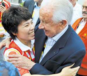 昨日,薩馬蘭奇與鄧亞萍相擁問(wèn)候 國(guó)際奧委會(huì)主席羅格和國(guó)際奧委會(huì)終身榮譽(yù)主席薩馬蘭奇昨天趕到北京奧運(yùn)村,體驗(yàn)北京給奧運(yùn)帶來(lái)的特色和激情。 進(jìn)村,主席研究安檢機(jī)器 昨天,記者獲悉羅格和薩馬蘭奇要到奧運(yùn)村,上午7點(diǎn)就乘大巴趕到奧運(yùn)村。記者注意到,這里并沒(méi)有任何歡迎的標(biāo)志。11點(diǎn)30分,一輛奧運(yùn)大巴駛達(dá)奧運(yùn)村大門(mén),車上坐了20多人。羅格率先走下來(lái),然后是薩馬蘭奇,前來(lái)歡迎羅格的是全國(guó)人大常委會(huì)副委員長(zhǎng)、北京奧組委副主席、北京奧運(yùn)村村長(zhǎng)陳至立。 進(jìn)入奧運(yùn)村大門(mén)時(shí),安檢口的機(jī)器吸引了羅格的注意,他非常感興趣地看了一會(huì),不過(guò)他并沒(méi)有親身體驗(yàn)這臺(tái)設(shè)備。 擁抱,薩馬蘭奇鄧亞萍最親 羅格和薩馬蘭奇一前一后走進(jìn)奧運(yùn)村,但歡迎的人并不多,包括工作人員和志愿者,也就10多人。進(jìn)村后,北京奧組委奧運(yùn)村部副部長(zhǎng)鄧亞萍早已恭候多時(shí),薩馬蘭奇和她來(lái)了一個(gè)親熱的擁抱。在隨后的大多數(shù)時(shí)間里,薩馬蘭奇都和鄧亞萍在一起,兩人開(kāi)心地聊著。兩人認(rèn)識(shí)十多年,關(guān)系非常好,有許多要說(shuō)的話,大家都知道這一點(diǎn),因此他們談話,也基本沒(méi)什么人打擾。一路上,鄧亞萍詳細(xì)向薩馬蘭奇介紹奧運(yùn)村的各種情況,薩馬蘭奇邊聽(tīng)邊頻頻點(diǎn)頭。 龍王廟,羅格留下中文簽名 在工作人員指引下,羅格和薩馬蘭奇直接趕到國(guó)際區(qū)的漢語(yǔ)屋和工藝屋,這里是外國(guó)運(yùn)動(dòng)員學(xué)習(xí)漢語(yǔ)的地方。逗留短短幾分鐘后,受陳至立邀請(qǐng),羅格和薩馬蘭奇一行進(jìn)入了村長(zhǎng)院。這是一座興建于明朝的四合院,以前是一座龍王廟。經(jīng)過(guò)翻新的龍王廟高墻、紅門(mén)氣勢(shì)非凡。羅格、薩馬蘭奇一行穿過(guò)兩座巨大石獅走進(jìn)村長(zhǎng)院大門(mén)。在村長(zhǎng)院里的羅格興致高昂,還在紅色的簽名帖上留下了祝福的話,而在英文祝福上面,他還特意用中文寫(xiě)下“羅格”兩個(gè)字。 羅格當(dāng)天還將自己的中文簽名留在奧運(yùn)村月亮門(mén)狀的和平友誼墻的簽名墻上!跋M@面和平友誼墻能像中國(guó)另外一座"墻"長(zhǎng)城一樣長(zhǎng)久保存,”羅格說(shuō)。 自雅典奧運(yùn)會(huì)發(fā)起“休戰(zhàn)墻”簽名活動(dòng)后,奧運(yùn)會(huì)主辦城市都會(huì)在奧運(yùn)會(huì)賽時(shí)建立“奧林匹克休戰(zhàn)墻”。北京奧運(yùn)會(huì)結(jié)合中國(guó)傳統(tǒng)的“和合”理想,將奧林匹克休戰(zhàn)墻命名為和平友誼墻。 中午1點(diǎn),已在奧運(yùn)村里參觀了1個(gè)多小時(shí)的羅格和薩馬蘭奇受到了東道主熱情的邀請(qǐng)——品嘗奧運(yùn)村的美食。 奧運(yùn)村餐廳的菜品非常豐富,每天要提供600只北京烤鴨,7天菜品不重復(fù)。不過(guò)昨天奧運(yùn)餐廳究竟為羅格一行提供了什么樣的美食,由于媒體無(wú)法進(jìn)入,大家并不清楚。就在羅格一行就餐時(shí),有記者開(kāi)玩笑地說(shuō):“羅格肯定吃了北京烤鴨!來(lái)北京不吃烤鴨,簡(jiǎn)直不可能! 本報(bào)北京專電 特派記者 周曉亮 廖宇翔 羅晶 |