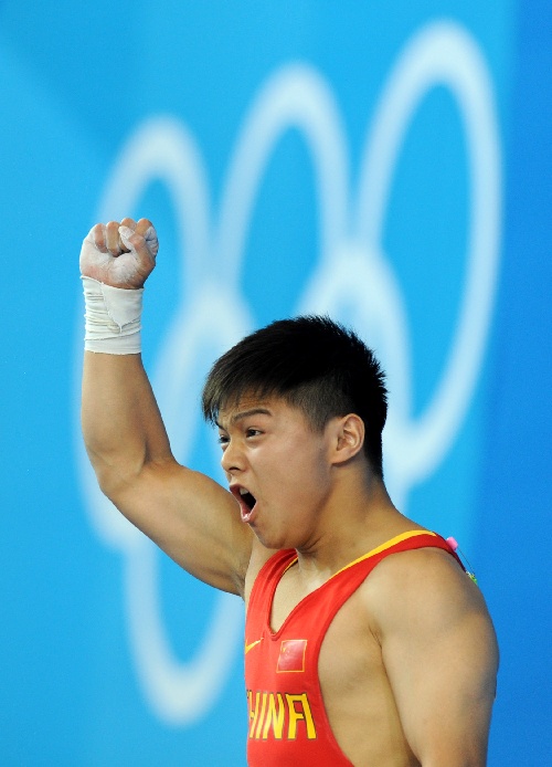 北京,2008年8月10日 (北京奧運)(2)舉重——中國選手龍清泉摘金 8月10日,中國選手龍清泉在北京奧運會男子舉重56公斤級決賽中,獲得冠軍。 新華社記者楊磊攝
